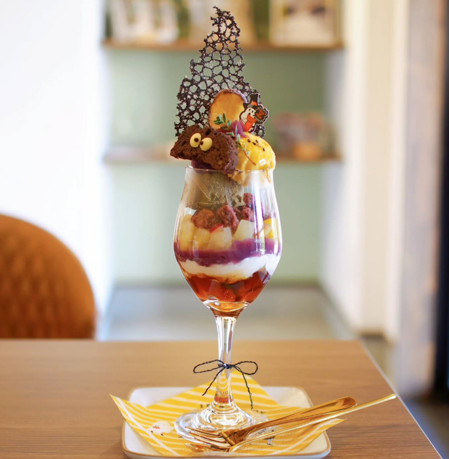 【10月】おいもとほうじ茶のパフェ(ハロウィンver)